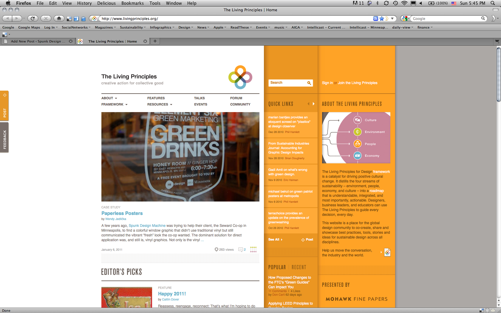 Paperless Poster 09.JAN.2011 Living Principle article on the Paperless Poster in Minneapolis for Green Drinks.